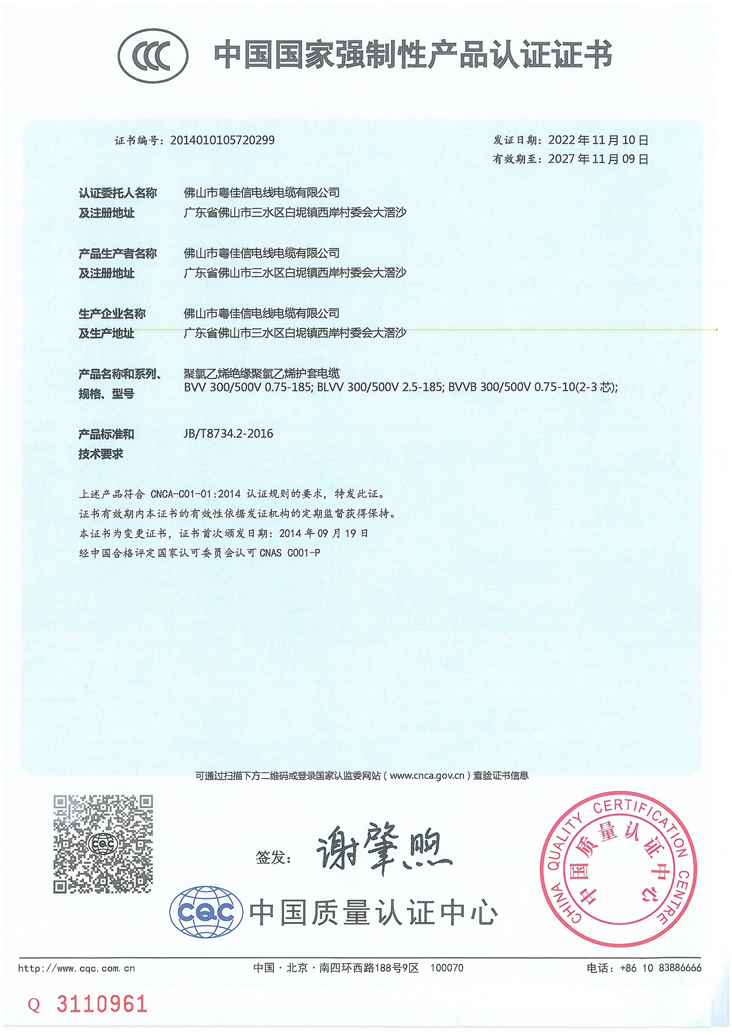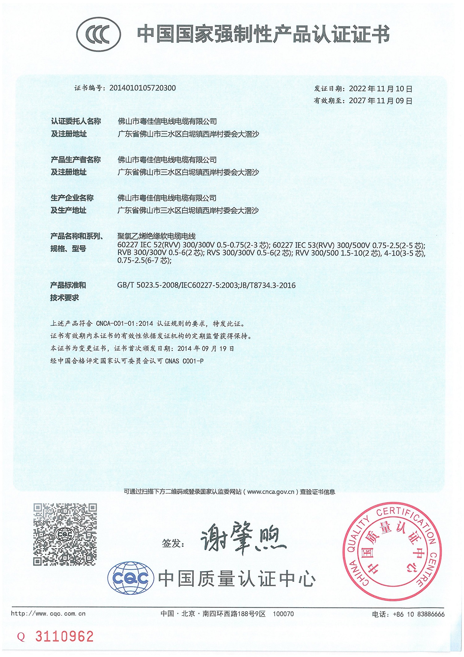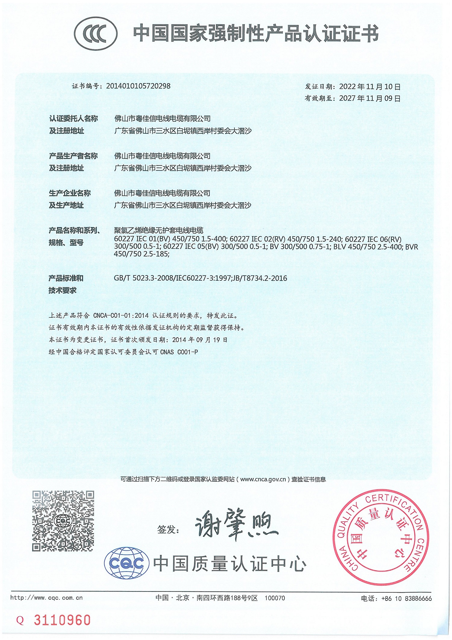 中国国家强制性认证证书