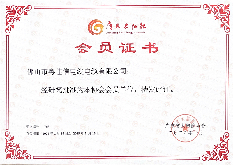 广东太阳能协会会员单位证书