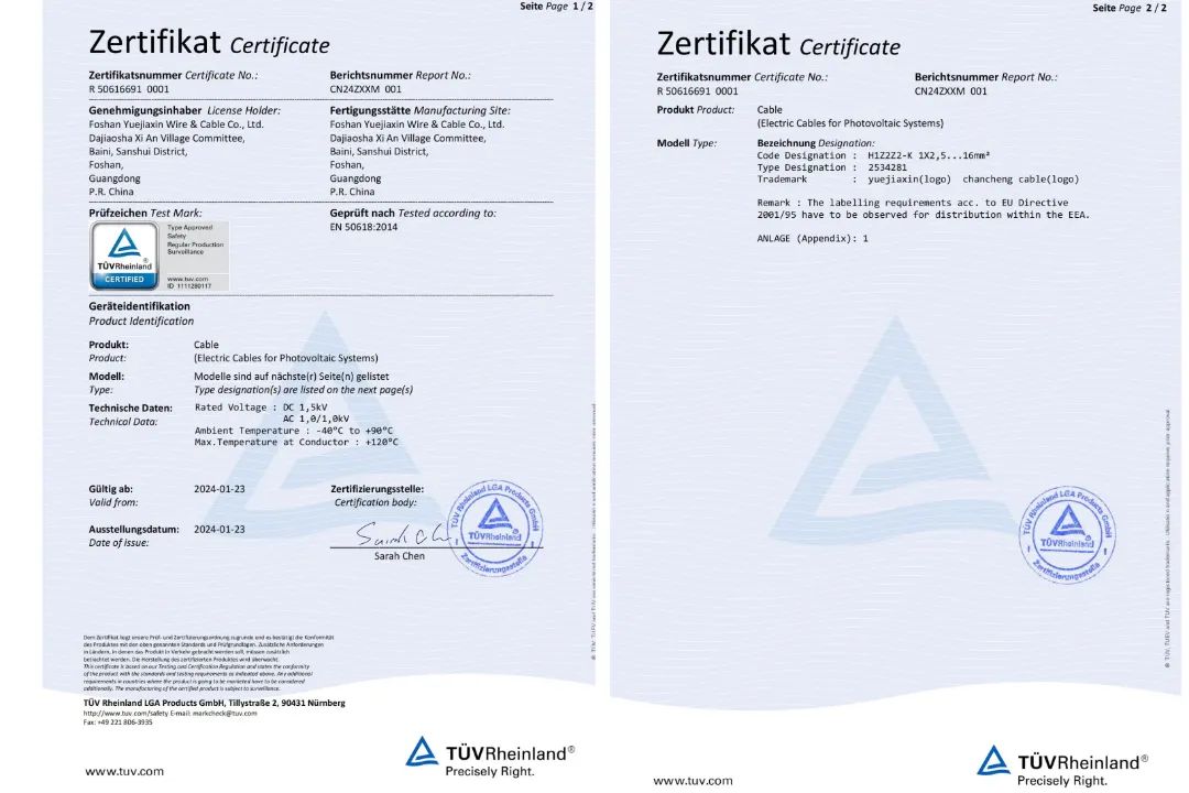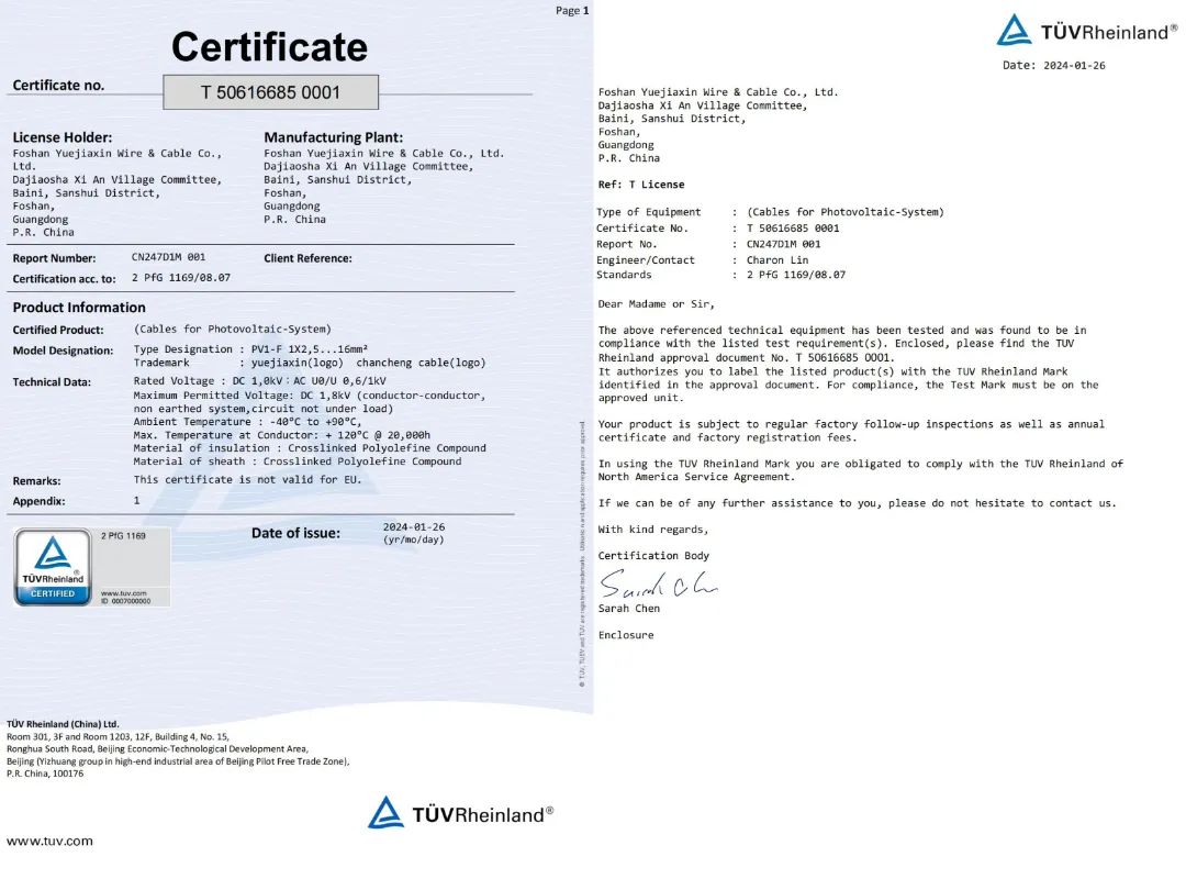 光伏线认证 2 PFG 1169