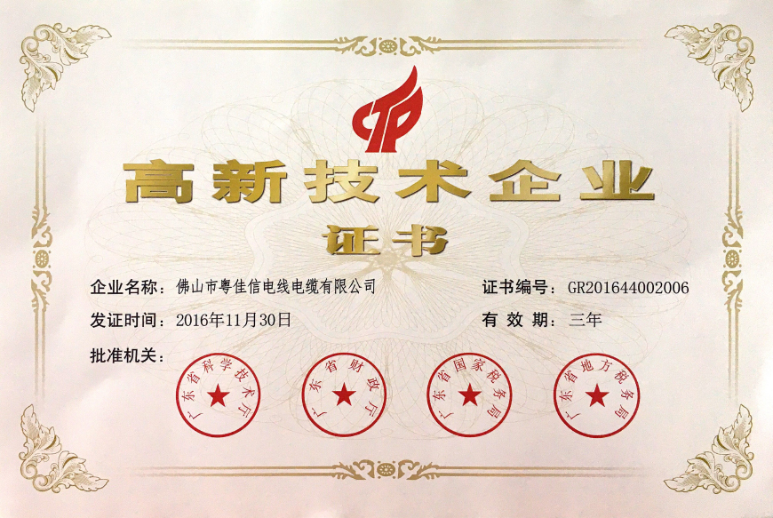 高新技术企业证书